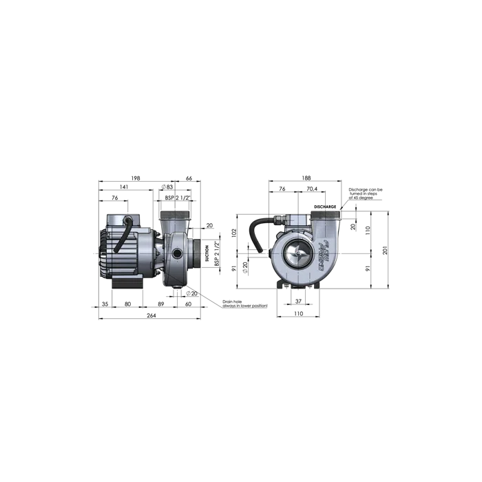 Der Motor und die Steuerelektronik sind bei dieser Pumpe voneinander getrennt, da die Pumpe keinen Kühllüfter benötigt, erfüllt der Motor die IP-Schutzart 67. Die Elektronik kann an einem leicht zugänglichen Ort montiert werden und ist auf mehrere Arten fernsteuerbar. Schaltschrank, Pumpe und Kabel sind vollständig EMV-geschirmt.