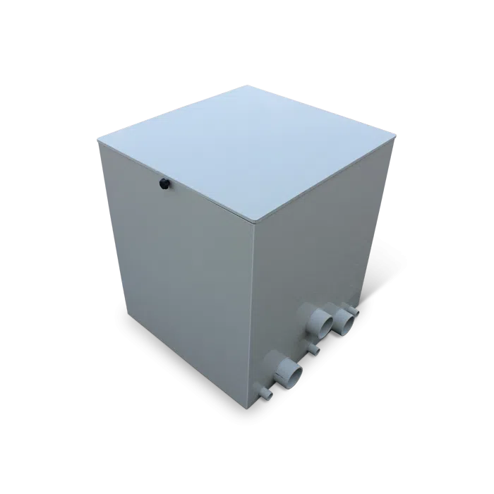 Das Wasser wird durch Schotten auf das Siebelement geleitet. Unter dem Siebelement ist ebenfalls eine Leitplatte montiert, die für eine ruhige Führung des Wassers in möglichst großem Abstand zu den 90-mm-Pumpenanschlüssen sorgt.