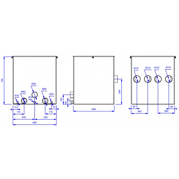 Die Air Aqua SuperSieve Medium und Large sind beide mit 3 x 110 mm-Einläufen ausgestattet, was die Möglichkeit bietet, z. B. 2 Bodenabläufe in Kombination mit einem Skimmer anzuschließen. Modell XL verfügt sogar über einen 4 x 110 mm-Einlauf. Darüber hinaus bietet der SuperSieve die Möglichkeit, 1 (Modell M und L) oder 3 UV-Lampen (Modell XL) einfach unten einzubauen.