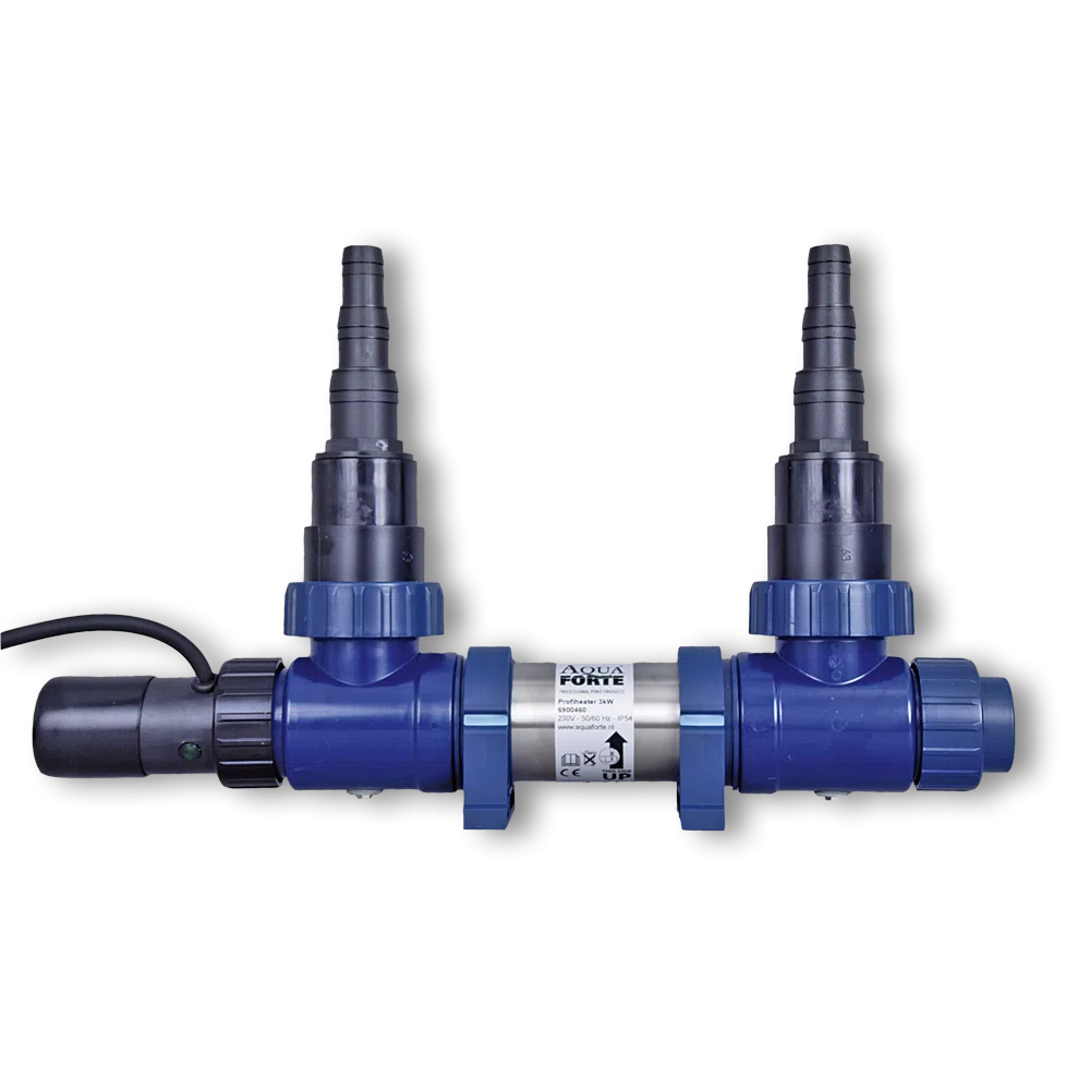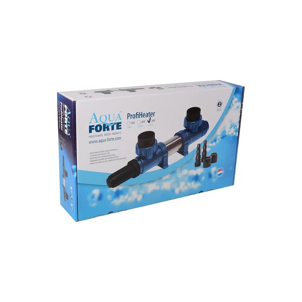 Der AquaForte Profi Teichheizer ist in einem Edelstahlgehäuse und in 3 Varianten mit 1.000 Watt, 2.000 Watt und 3.000 Watt erhältlich.