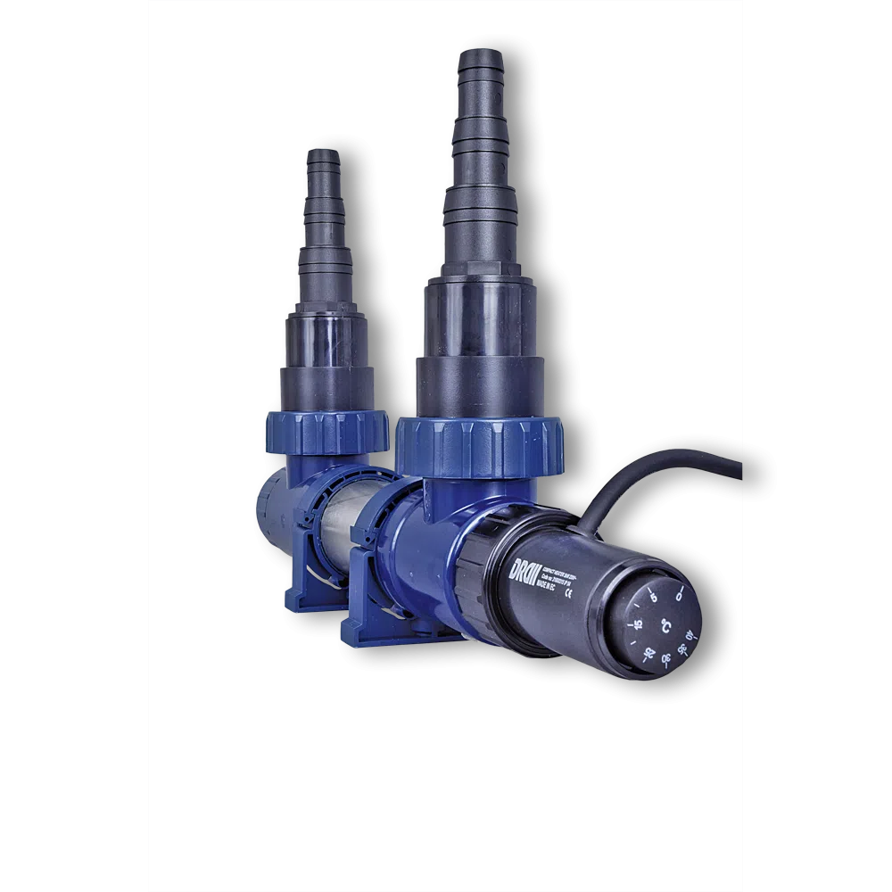 Diese Modell ist mit einem Thermostat ausgestattet, wodurch sich die Temperatur von 0-40°C regeln lässt. Das Heizelement und der Temperaturfühler sind aus Edelstahl und somit rostfrei.