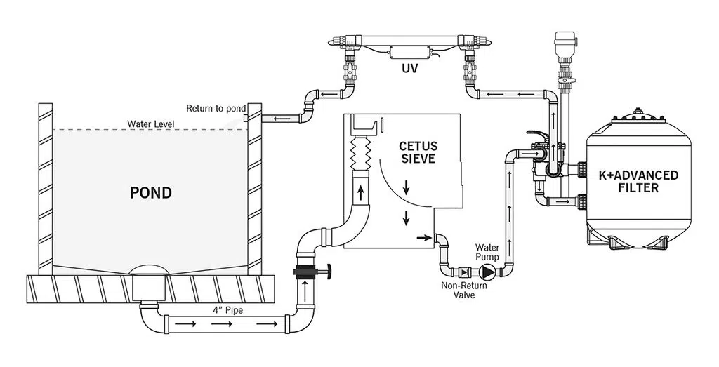 Dem K+ Advanced Filter sollte immer ein Cetus Bogensieb vor und ein UV-Klärgerät nachgeschaltet werden.