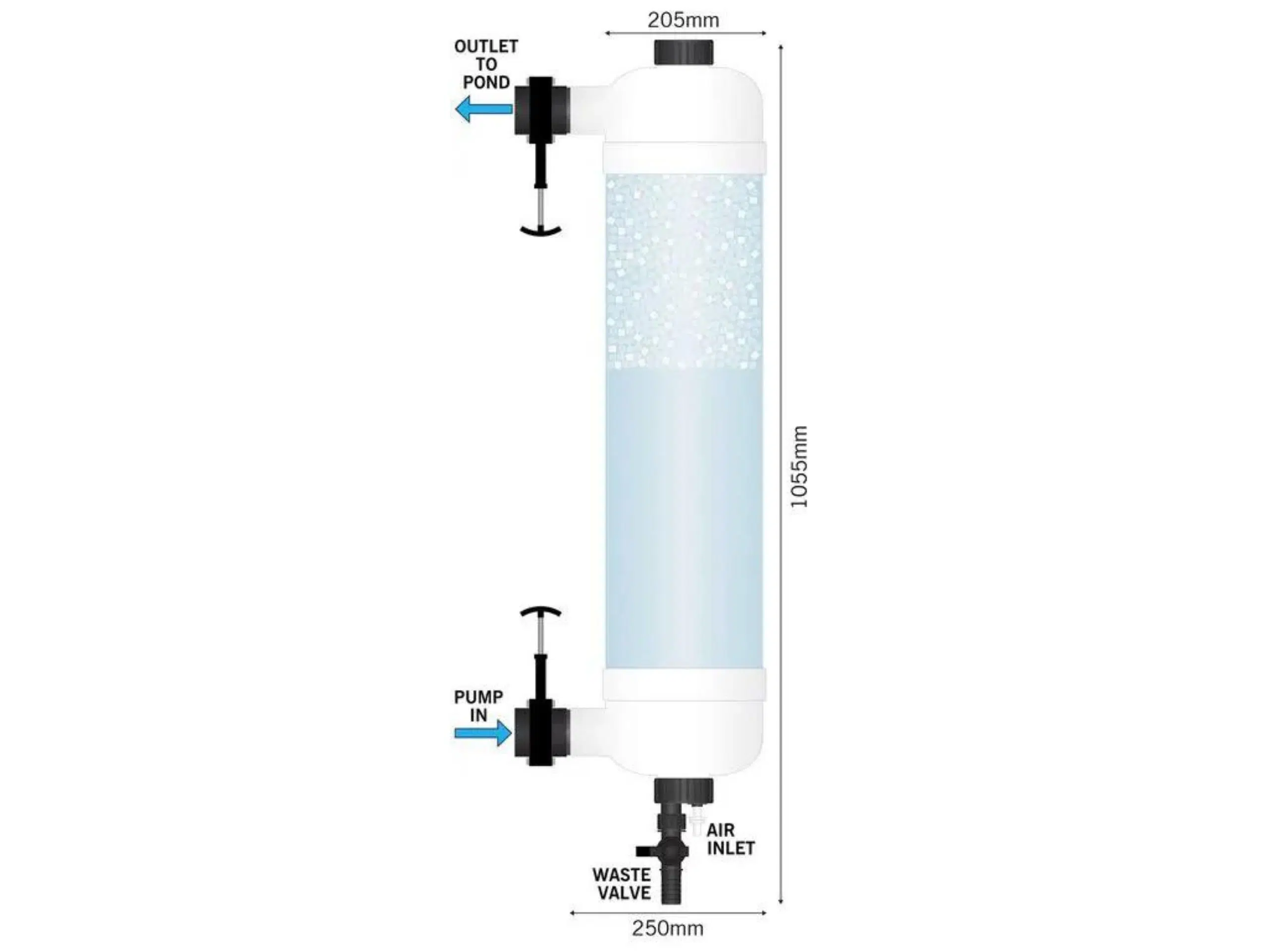 Der Tempest Filter ist eine Neuheit und ist vielfältig einsatzbar. Der Tempest Filter kann in Verbindung mit jedem Filtersystem verwendet werden und bietet eine zusätzliche mechanische und biologische Filterung. Der Filter kann auch hervorragend als als alleinstehende Filter für kleine Teiche bis 5.000 Liter, Verkaufsanlagen und Quarantänebecken genutzt werden. Das verwendete Filtermaterial K+ Media ist das Ergebnis umfangreicher Forschungs- und Entwicklungsarbeiten und enthält Mineralien für schnellere Reifezeiten.