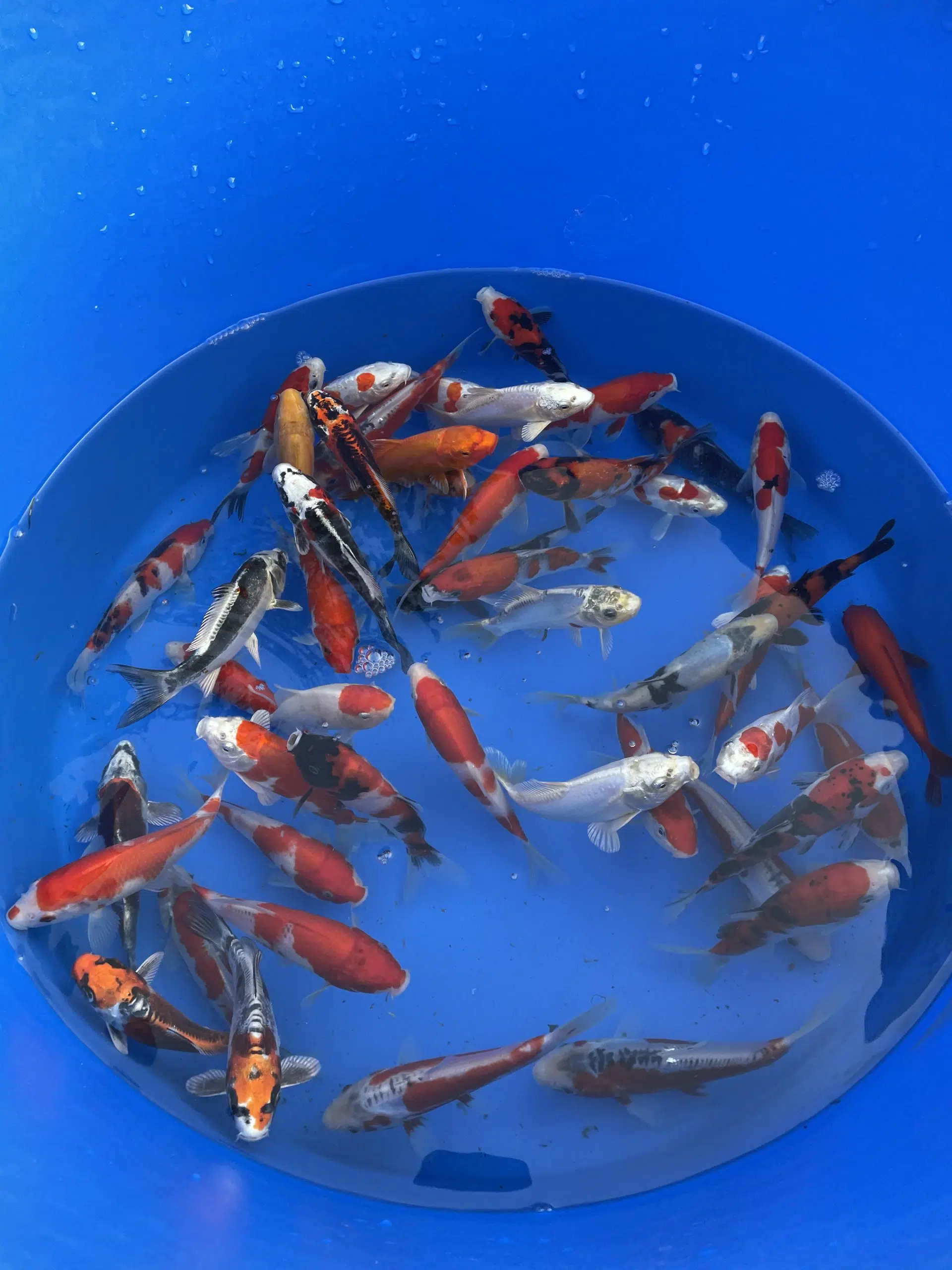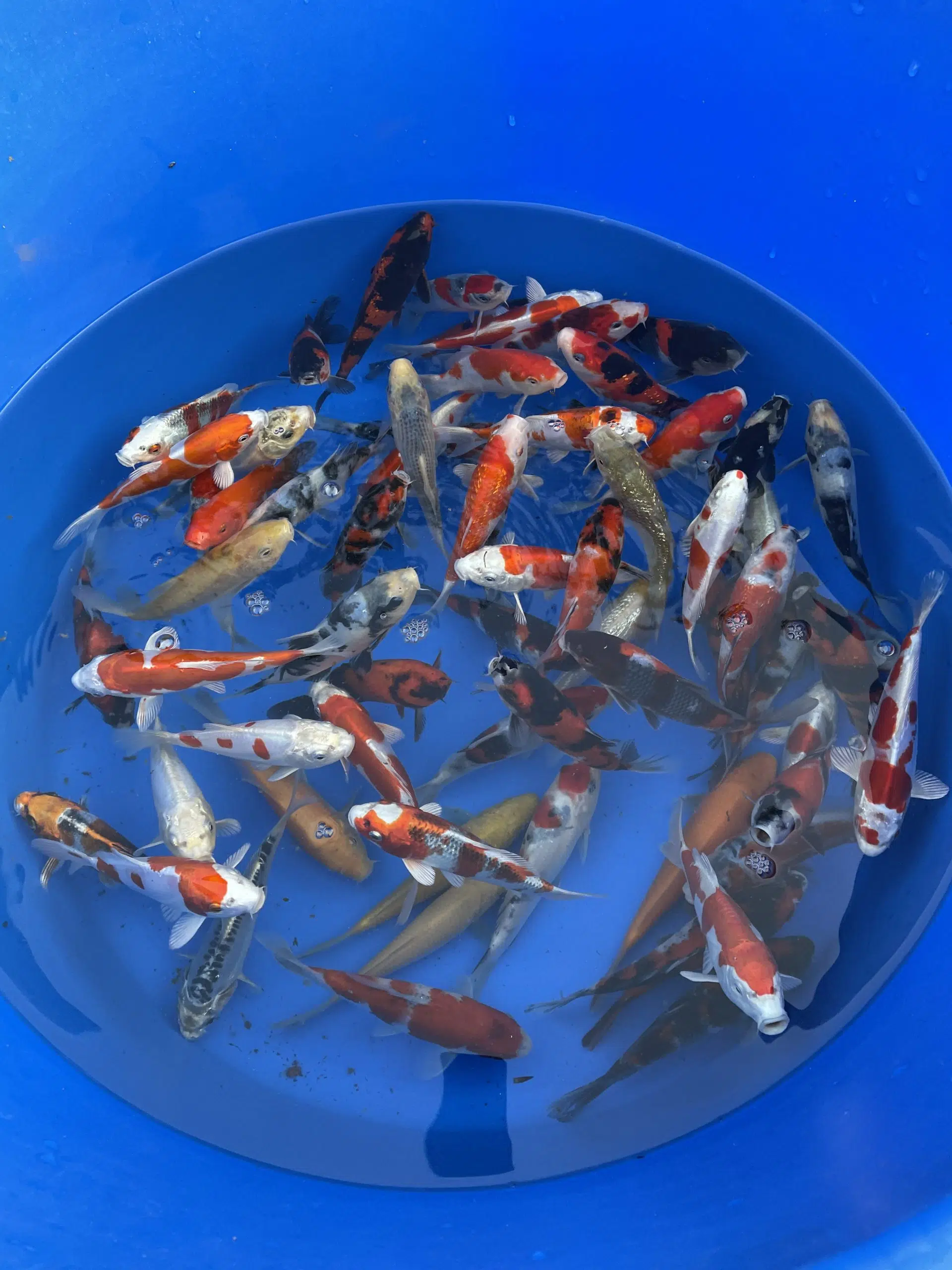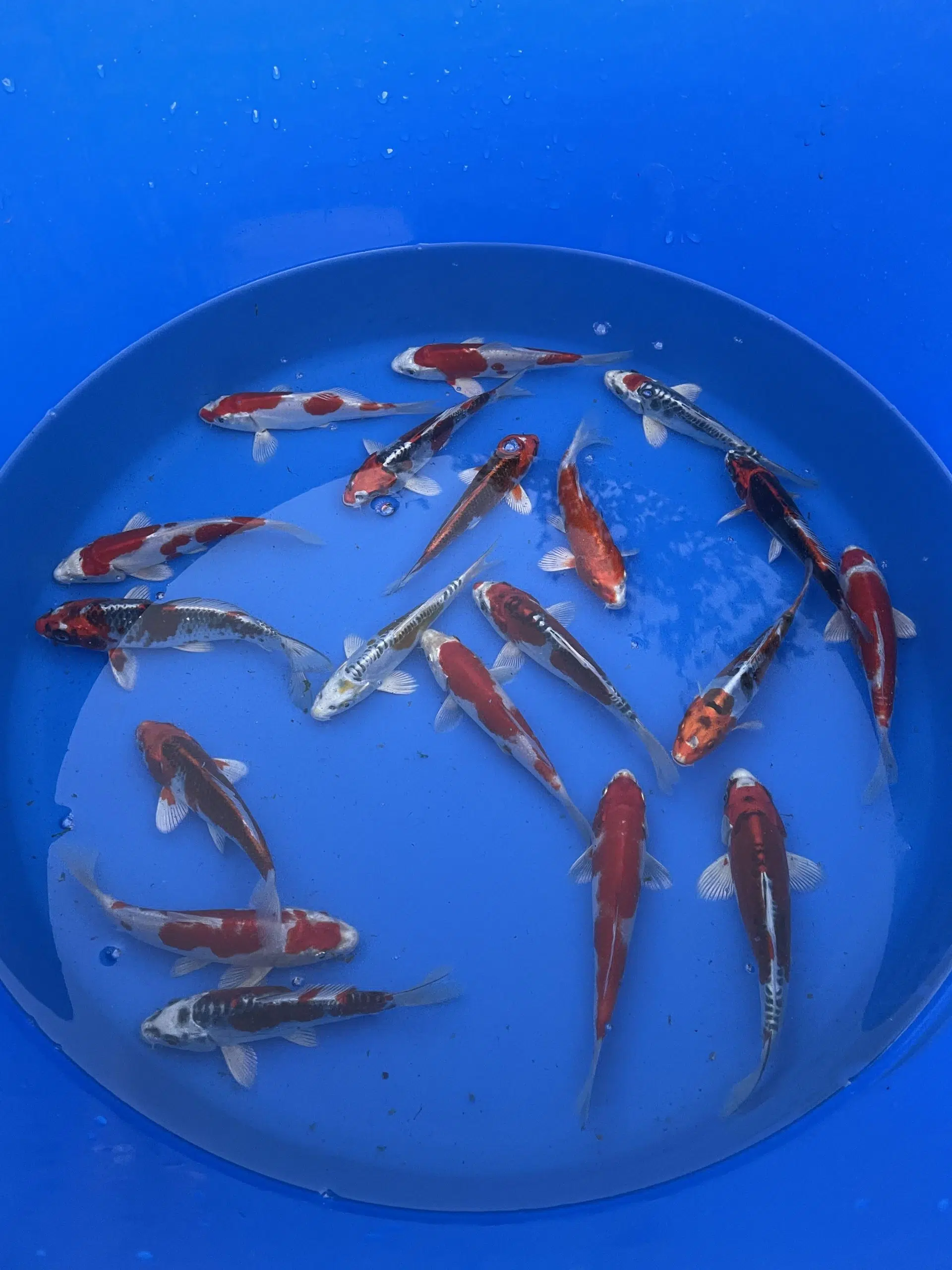 Sehr schöner bunter Nisai Japankoi Mix vom Züchter YAGENJI in Japan. Nisai sind zweijährige Koi. Bei diesem Mix handelt es sich um sehr gut wachsende Koi mit viel Potenzial dieses Jahr noch über 35-40cm zu wachsen!