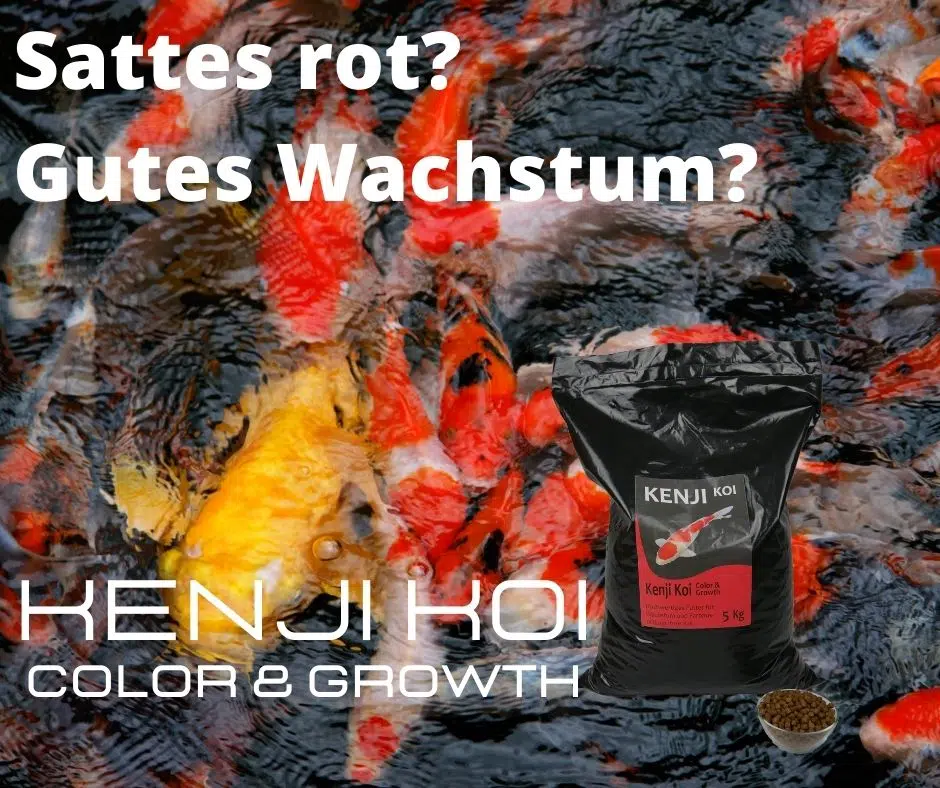 Dieses Futter wurde speziell entwickelt um das Wachstum und die Farben der Koi zu fördern. Hier ist bewusst der Proteingehalt gesteigert um das Wachstum zu fördern, spezielle Inhaltsstoffe wie Astaxanthin fördert die Farben der Koi. Halten Sie jedoch Koi, welche nicht mehr in der starken Wachstumsphase sind, dies sind Koi, welcher Älter als 2 Jahre sind, eignet sich unser Protein-reduziertes Futter KENJI KOI Color Intense noch besser! Dieses fördert noch intensiver die Farben, hat aber einen gesenkten Proteingehalt, da der Bedarf an Proteinen bei nicht mehr so schnell wachsenden Koi geringer ist.