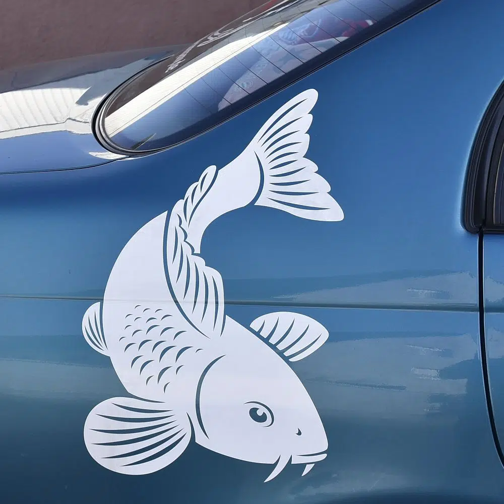 Neu designter Koi Autoaufkleber in weißer Farbe