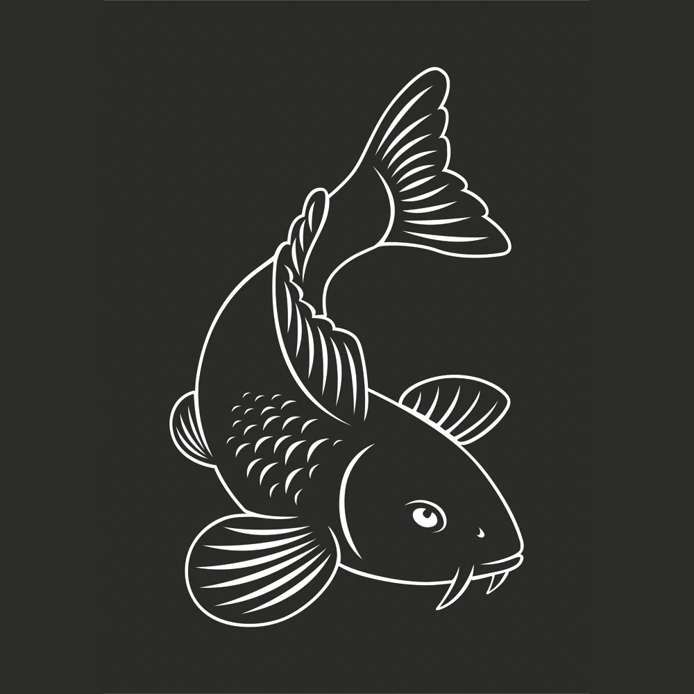 - Dieser Koi-Autoaufkleber ist mit einer weißen Kontur versehen.