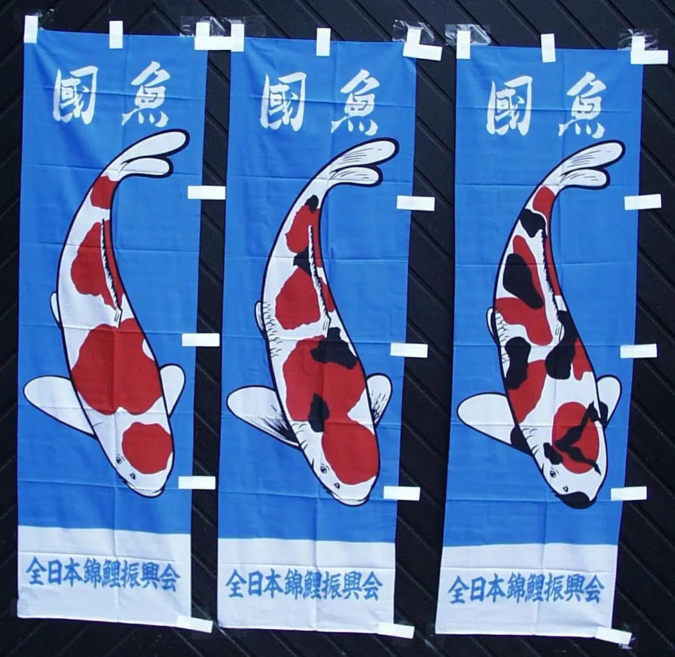 In diesem Fahnen Set sind 3 Fahnen enthalten mit folgenden Varietäten: Kohaku, Sanke und Showa.