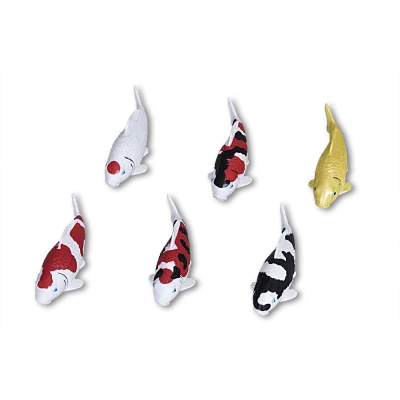 Ideal z.B. für den Kühlschrank eines Koi-Liebhabers. Natürlich finden Sie die Go-Sanke Gruppe als Koi-Varietäten, aber auch die immer beliebteren Shiro-Utsuri und auch Yamabuki als Varietät. Die Magnete sind ca. 6cm Lang; 2,5cm Breit und haben eine Höhe von 2,5cm.