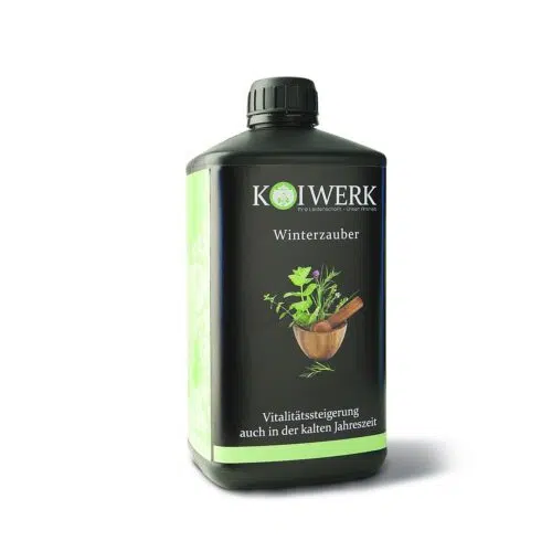 Die Nahrungsaufnahme ist bei Koi nicht auf das Fressen begrenzt. Durch den Einsatz von flüssigem Zusatzfutter nehmen Ihre Koi zusätzlich lebensnotwendige hochwertige Nährstoffe aus dem Wasser auf. Gerade in der kalten Jahreszeit kommt dieser Ernährungsweise eine gesteigerte Bedeutung zu. Mit KOIWERK Winterzauber fügen Sie dem Teichwasser reichhaltige Nährstoffe zu, welche gerade bei niedrigen Wassertemperaturen eine ausgewogene Ernährung sicherstellt.
