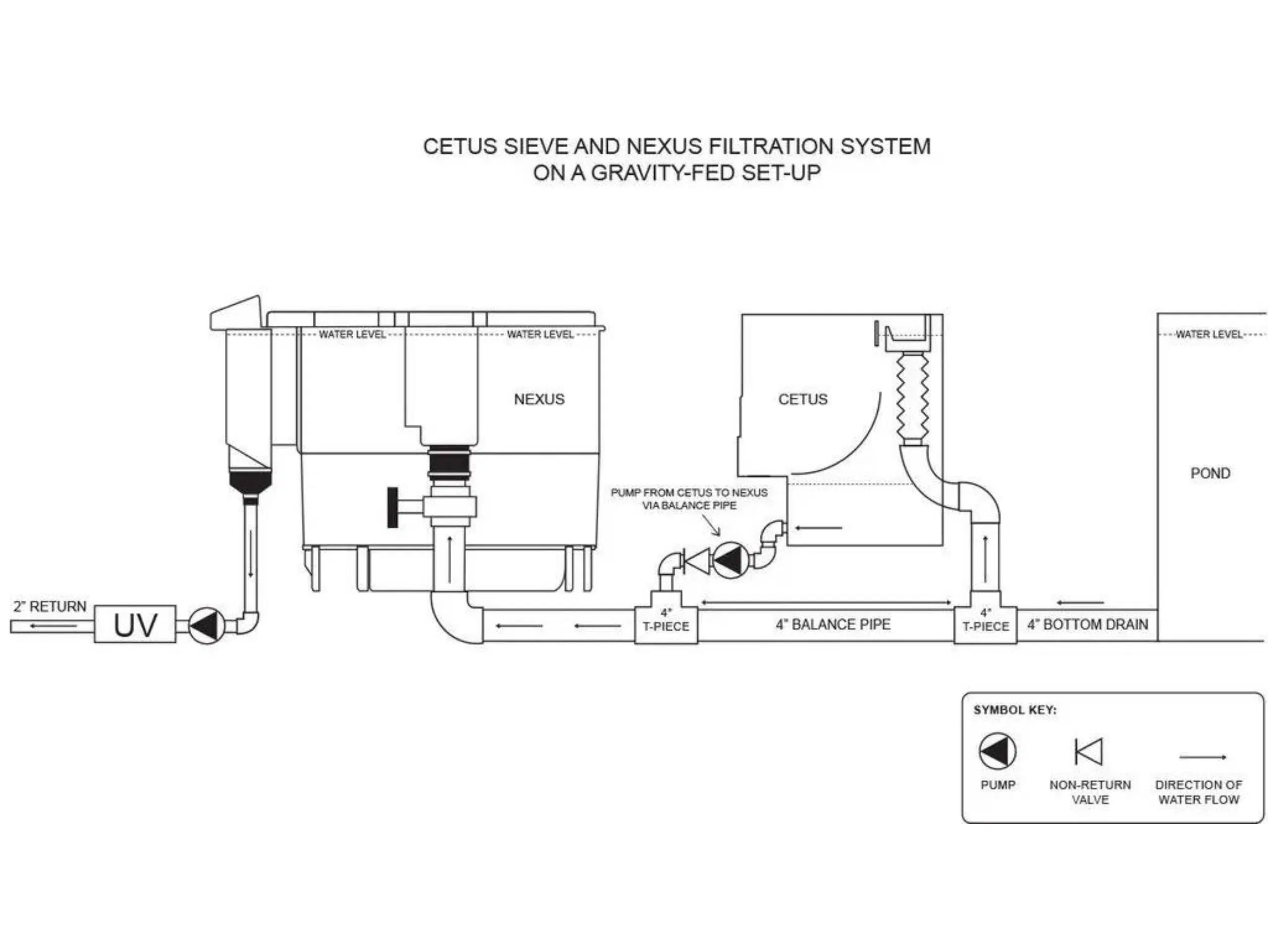 Mit Hilfe der innovativen Nexus können zwei offene Filtersysteme wie der mechanische Bogensiebfilter Cetus und der Nexus in „doppelter“ Schwerkraft oder Gepumpter Schwerkraft miteinander verbunden werden, ohne dass einer der beiden Filter leer- oder überläuft.