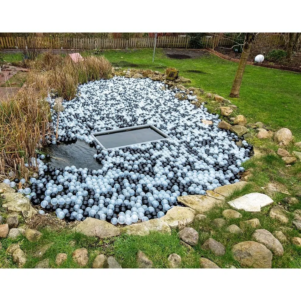 Durch die 1000 PE-Bälle lässt sich die Teichoberfläche leicht und schnell abdecken.