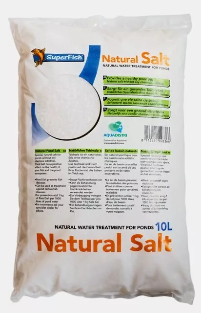Die Gabe von 1 kg Salz pro 1.000 Liter Teichwasser fördert die Gesundheit Ihrer Teichfische und Koi und schützt die Fische vor Krankheiten.