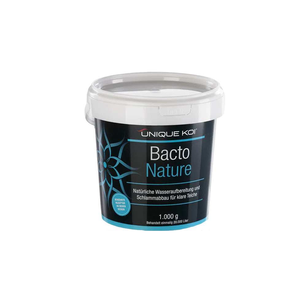 Unique Koi Bacto Nature ist ein rein natürliches Ganzjahresprodukt, welches Mulm, Schlamm und Laub im Frühjahr und Herbst schnell abbaut. Enthaltene trübungsbindende Pflegestoffe und Sauerstoffkomponenten sorgen im Sommer für klares Wasser und für zusätzliche Bakterienaktivität. Stärkt das biologische Gleichgewicht im Teich. Ebenfalls schafft es nachhaltig glasklares und gesundes Wasser und wirkt unterstützend bei der Algenbekämpfung, z.B. in der Kombination mit Fadenalgen Stopp. Die Wasserqualität wird auf rein natürlich biologische Weise sichtbar verbessert. Auch für Schwimmteiche bestens geeignet.