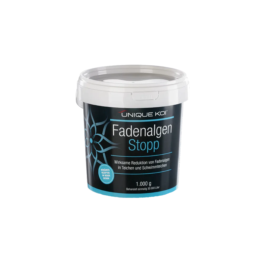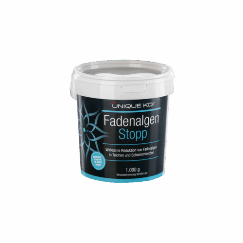 Mit dem Fadenalgen Stopp von Unique Koi behandeln Sie effektiv Fadenalgen im Gartenteich. Keiner mag die langen grünen Algen im Teich, aber dennoch gehören Sie zum Alltag an vielen Teichen. Oft lässt sich die Ursache nicht lokalisieren, oder eben doch, und trotzdem wachsen die Algen. Mit unseren Produkten gegen Fadenalgen sagen Sie den Algen den Kampf an!