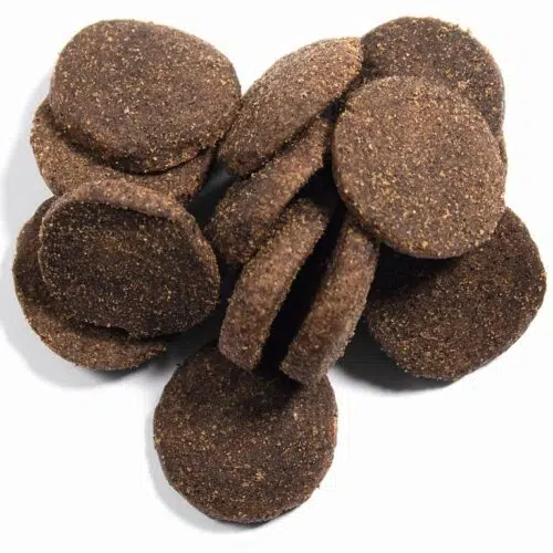 Die Koi Chips haben einen Durchmesser von ca. 25mm und sind ideal für die Fütterung aus der Hand.