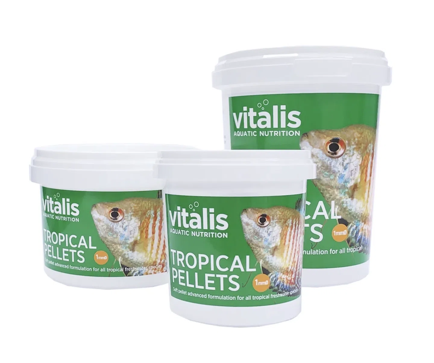 Vitalis Tropical Pellets bieten Ihren Fischen ein hochwertiges, leicht verdauliches und nahrhaftes Futtermittel. Durch die Herstellung mit dem Niedertemperaturverfahren bleiben die meisten Inhaltsstoffe und Mineralien im Futter enthalten.