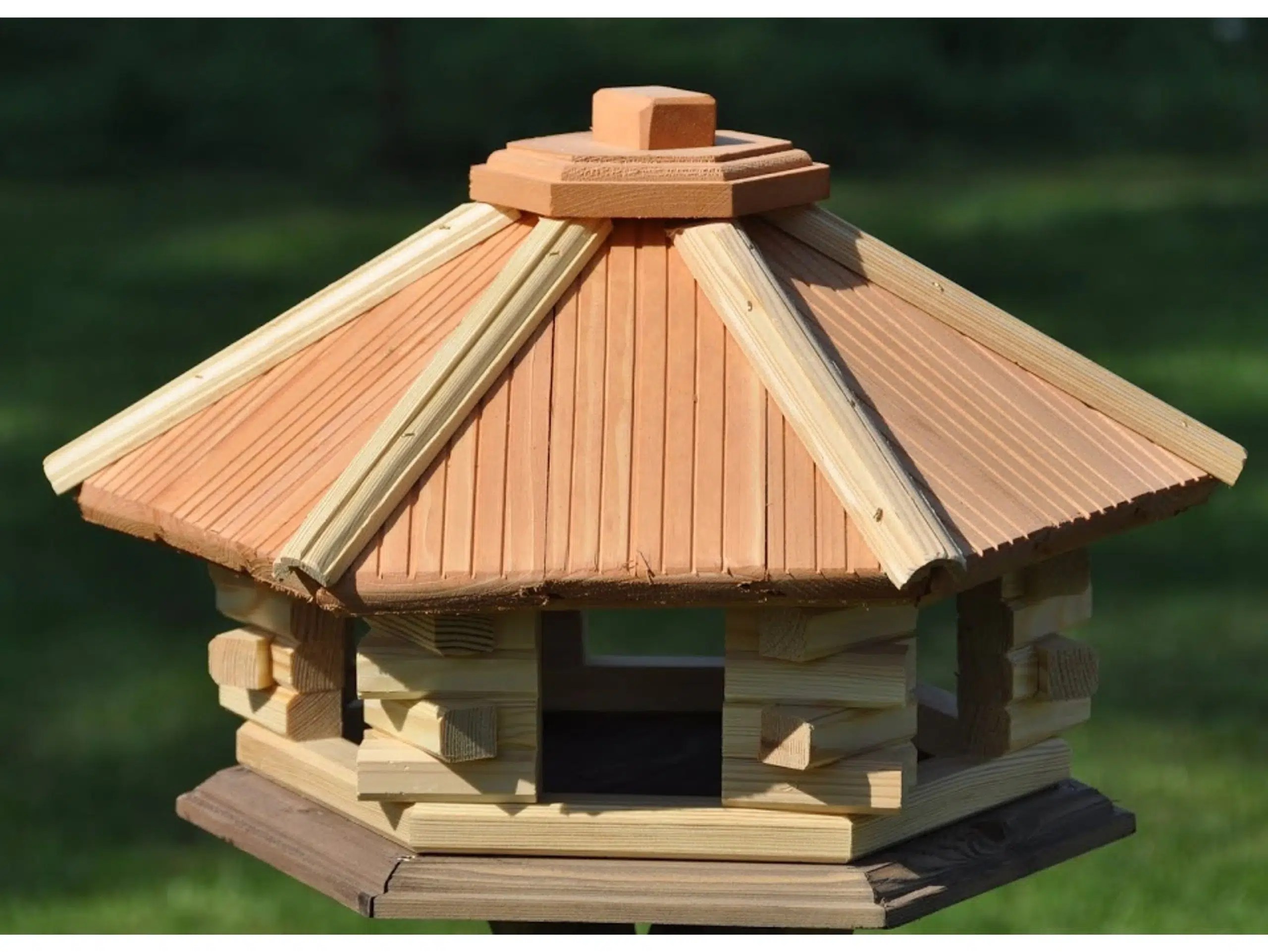 Dieses Vogelhaus wird aus massivem Echtholz hergestellt und ist somit langlebig und umweltfreundlich. Durch die kleinen Einflugschneisen 10cmx7,5cm wird den Vögeln eine sichere und ungestörte Nahrungsaufnahme ermöglicht. Durch das große Dach werden die Vögel auch vor schlechtem Wetter wie Regen und Hagel geschützt.