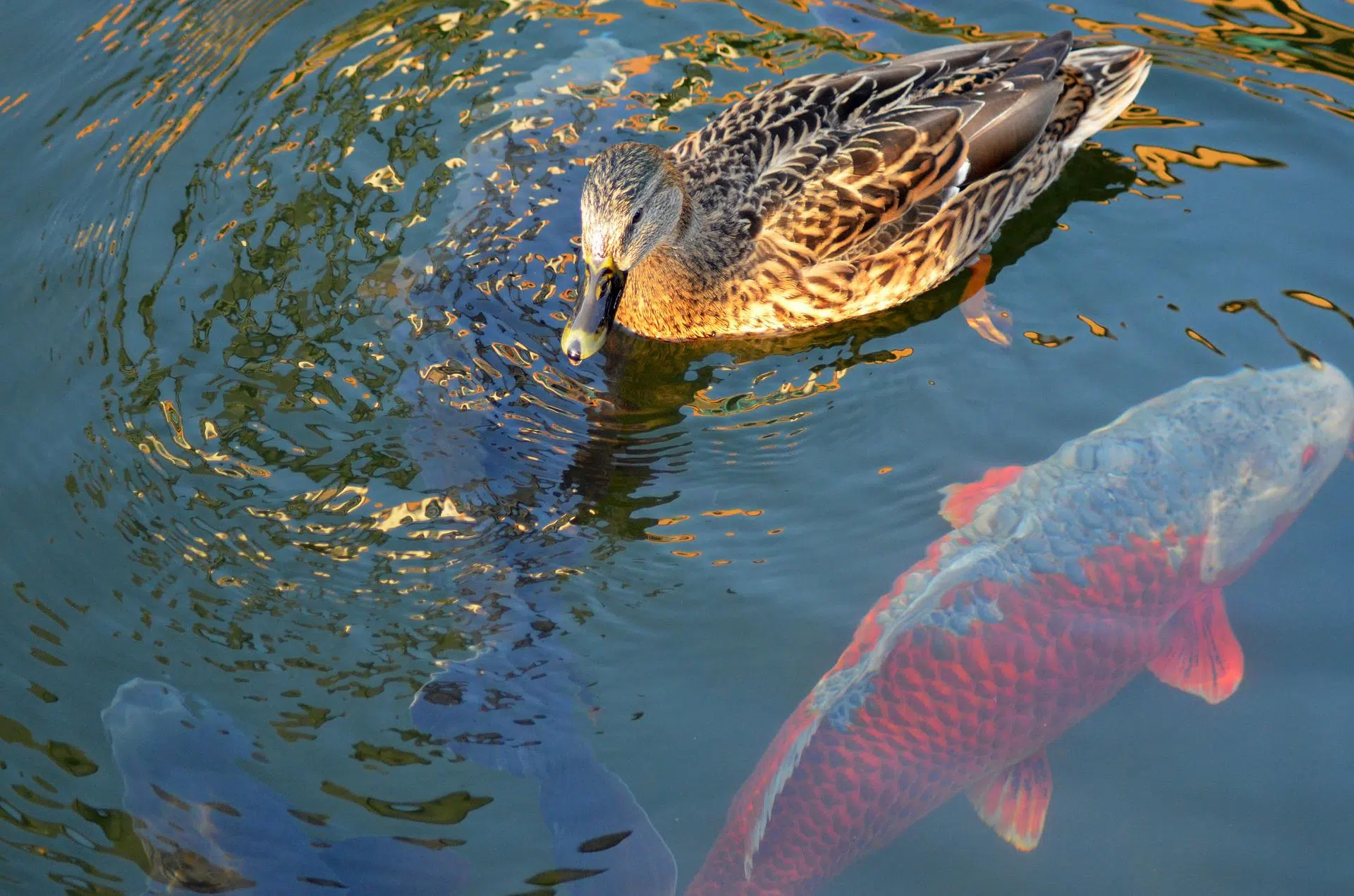 Enten und Wildvögel im Koiteich